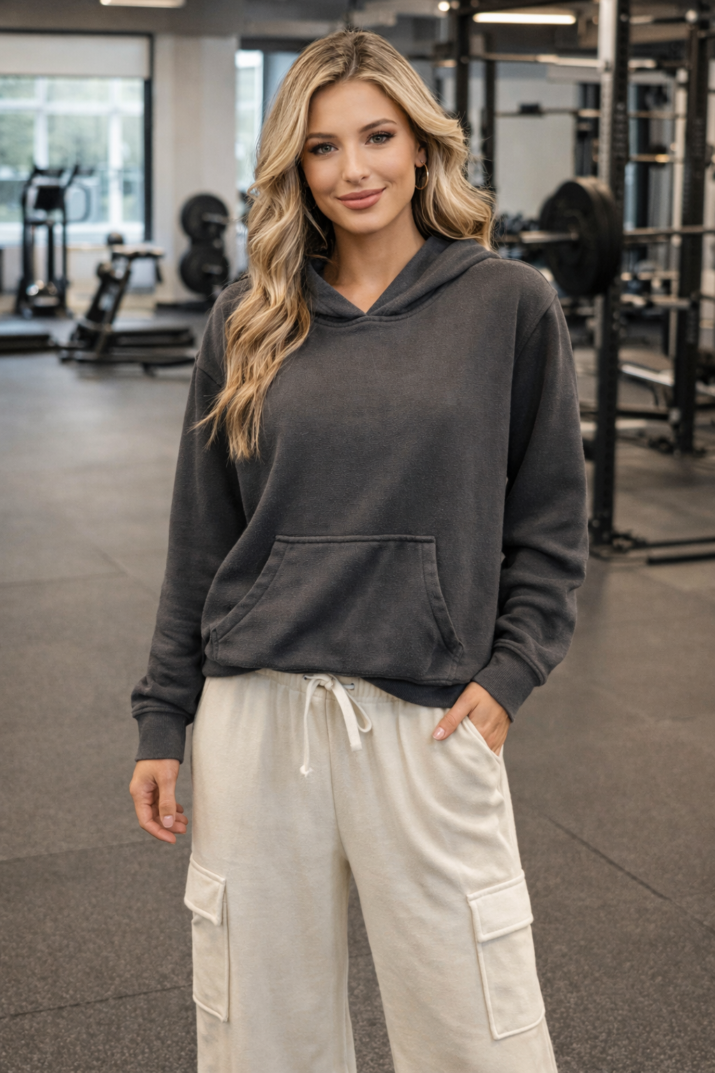 Effortlessly cool and ultra-comfortable, the Midnight Mesa Luxe Hoodie brings elevated casual style to your everyday wardrobe. Designed in a rich charcoal tone, this soft, premium-feel hoodie features a relaxed fit and classic front pocket for both comfort and function.