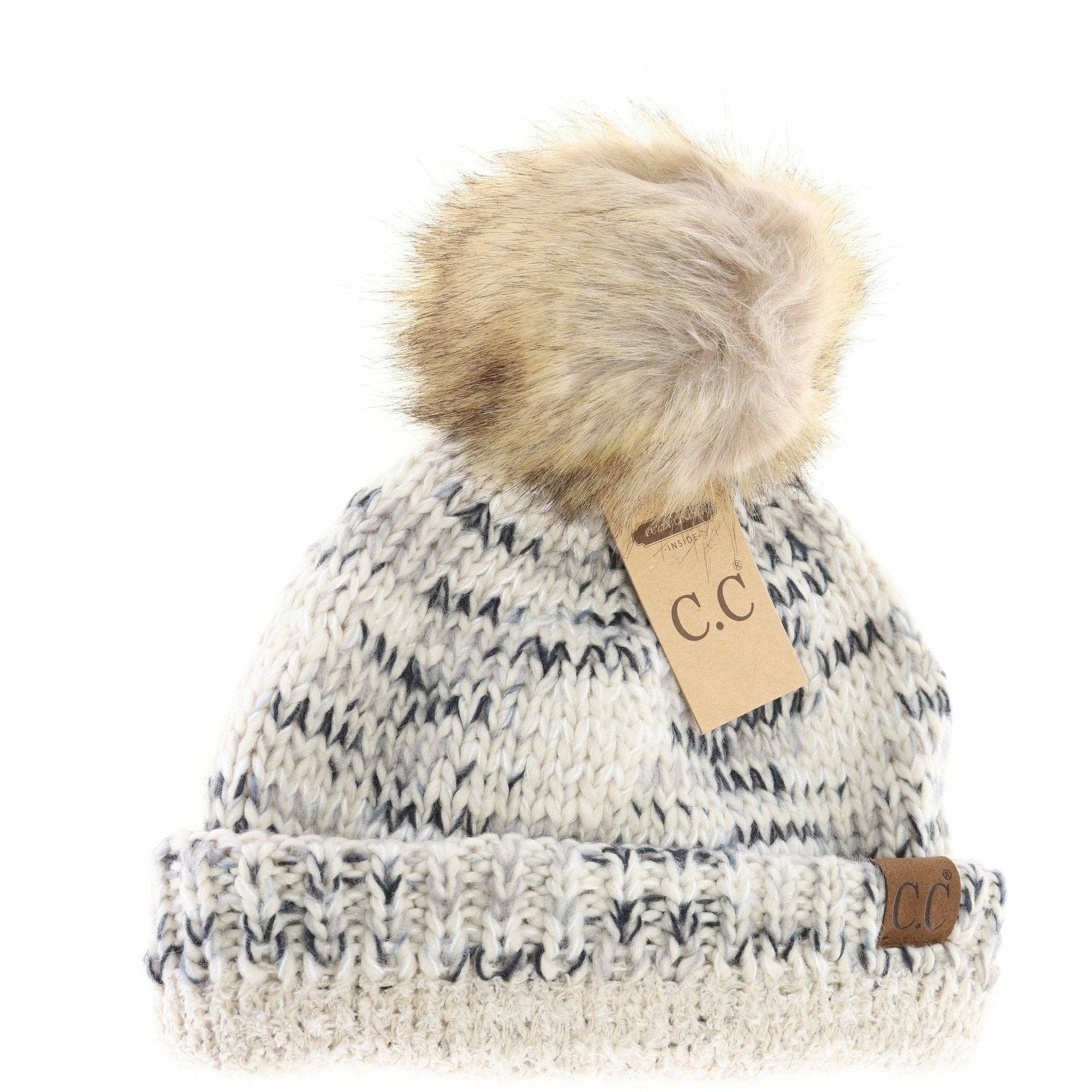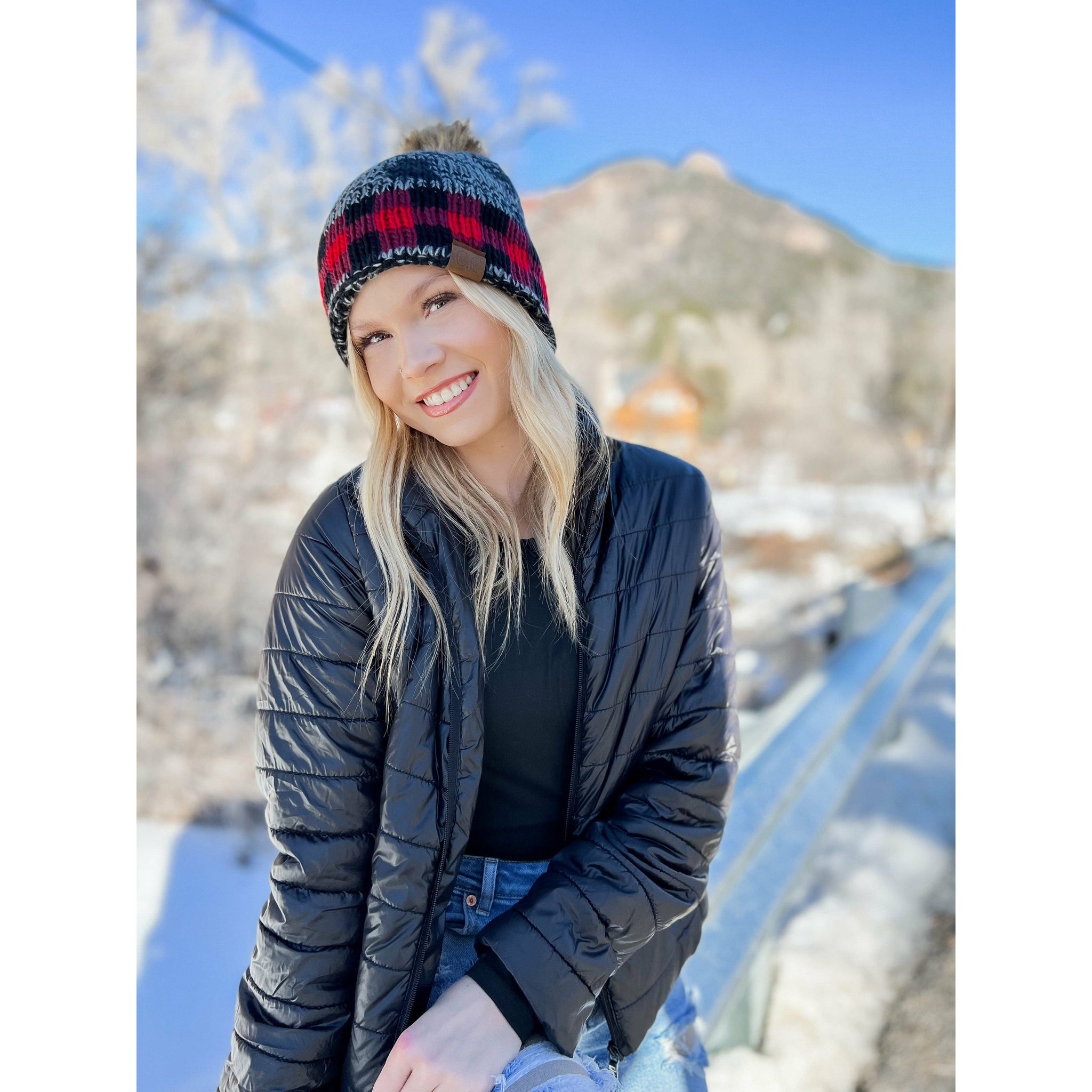 Buffalo Check Mixed Print Fur Pom - CC Beanie