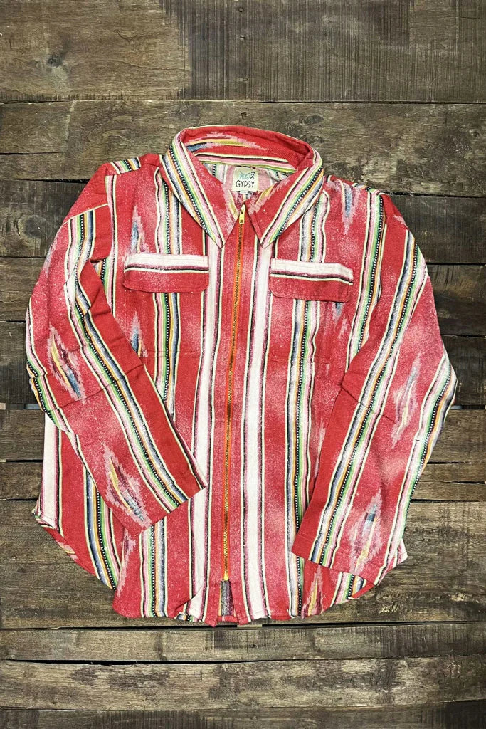 Embrace your inner wanderer with this Aztec Western Full Zip Lightweight Shirt Jacket. Crafted from soft cotton in a warm beige tone, it features eye-catching boho-inspired detailing and an open sleeve design that screams Southwest vibes. The front zipper makes layering effortless, while the relaxed fit keeps you comfy all day long. Hand wash to maintain its beautiful texture. Perfect for those who love a touch of bohemian flair with their everyday style.