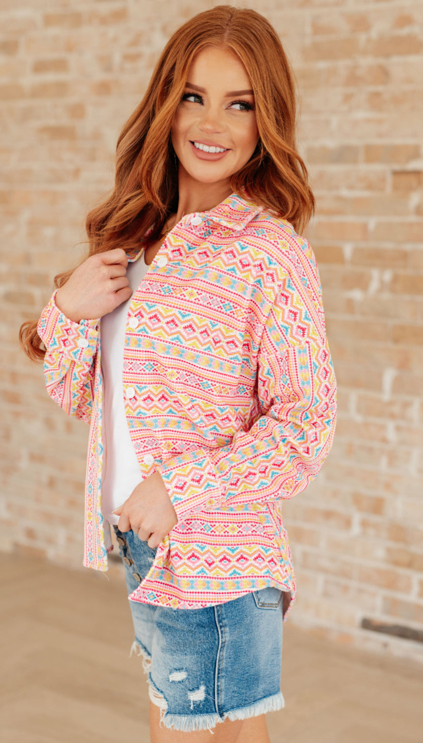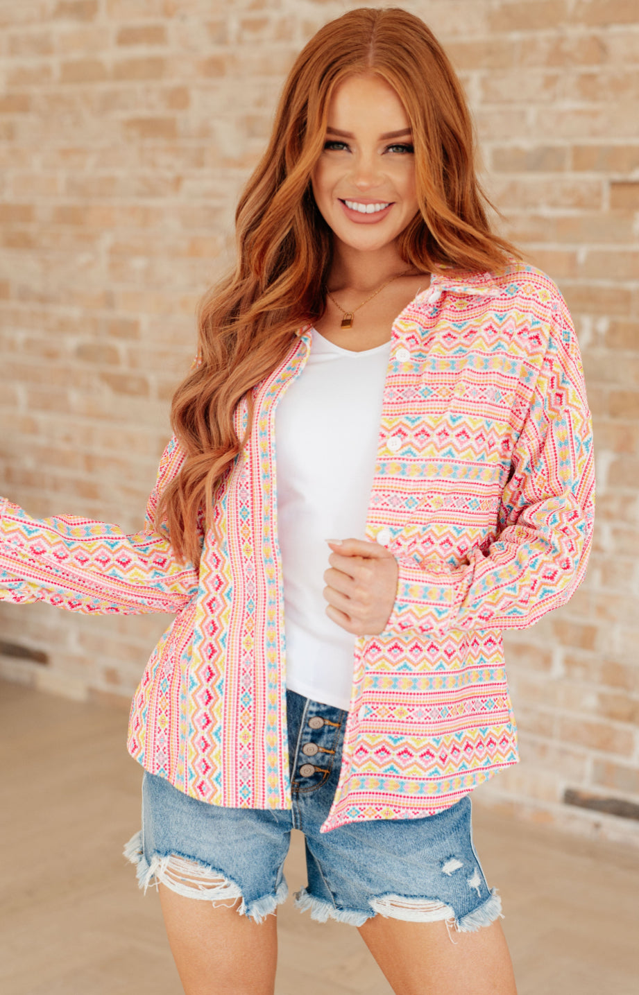 Put a geometric spin on your casual wardrobe with our Imagine When Corduroy Button Down shirt. This wearable work of art is made of stretchy corduroy fabric, so you can step out in comfort, and features a gorgeous striped pattern that'll make 'em gasp! With a button front and handy side pockets, you won't want to take it off! Let's see what you can imagine when you wear it!
