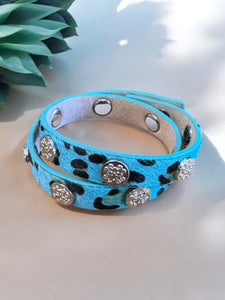Meagen Calf skin Leopard Double Wrap - Turquoise - Rustic Cuff  - Vendor