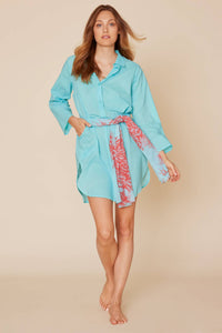 Gabriella Aqua Blue Tunic Shirt Dress with Pockets - ModaPosa