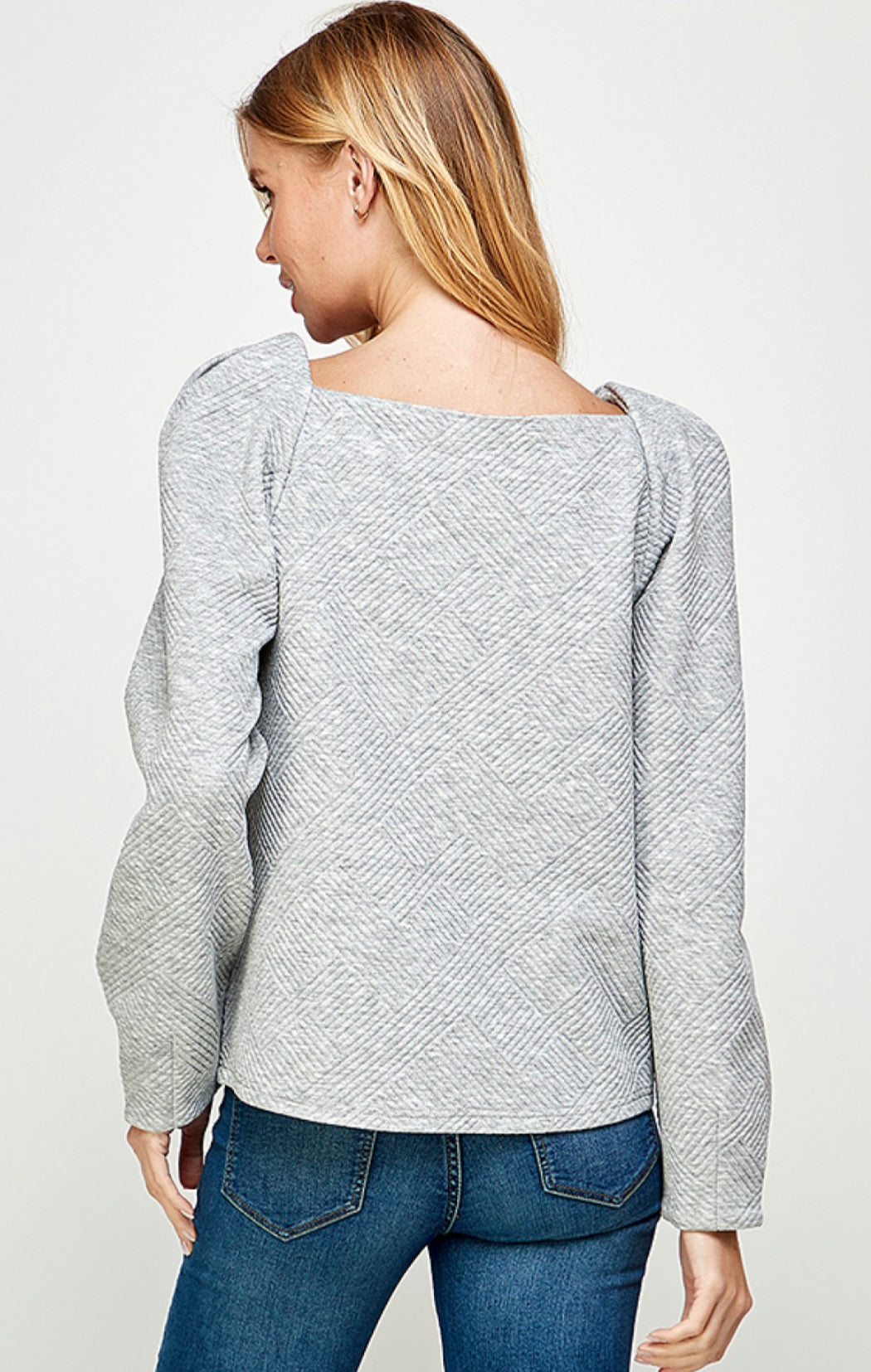 Introducing the Just a Puff Textured Top—your new go-to for effortless style! This chic boat neck long sleeve features a gorgeous textured fabric that adds dimension and visual interest to any outfit. Crafted from a breathable blend of polyester, rayon, and spandex, it offers the perfect balance of comfort and stretch. Whether you're dressing up for a night out or keeping it casual, this versatile grey top pairs beautifully with everything in your wardrobe. See and be seen in this playful essential!